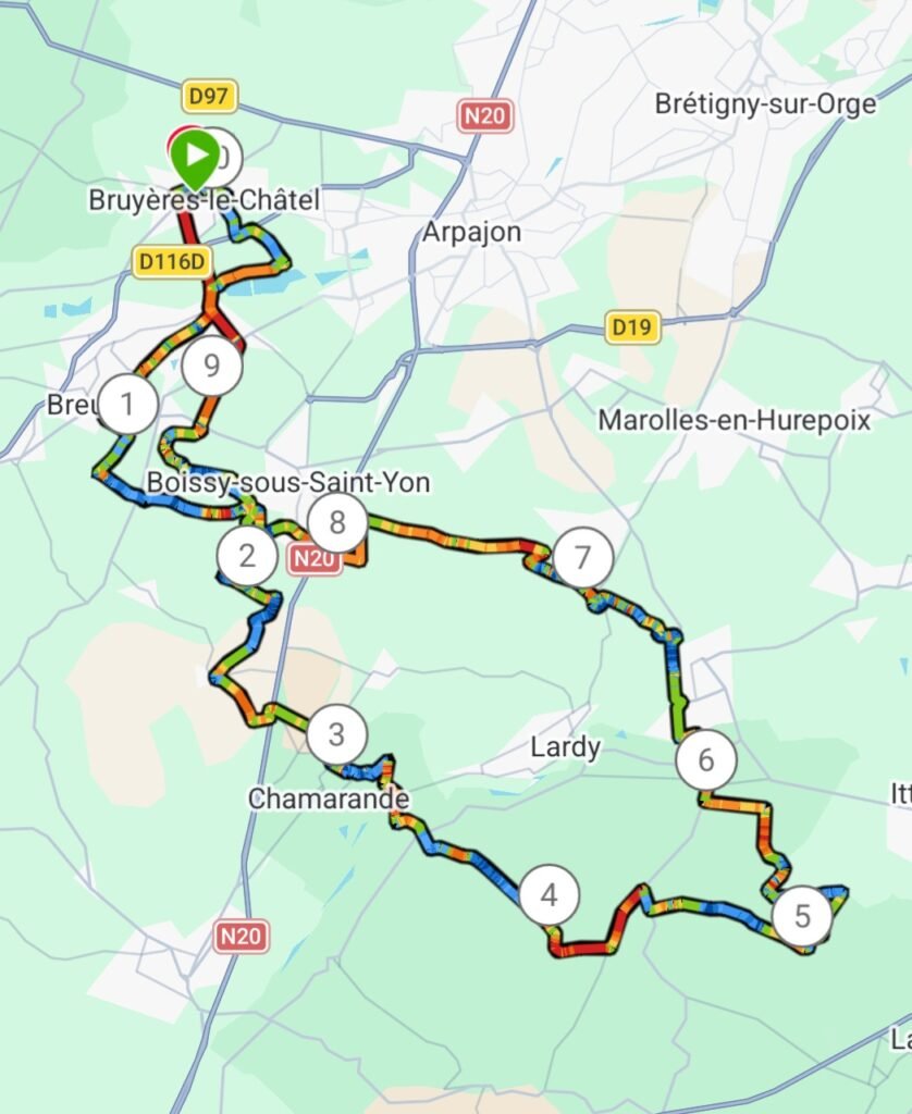 6 inscrits, 9 au départ (et 9 à l’arrivée) 7 en élec !!! Sortie vers Chamarande avec pas mal de