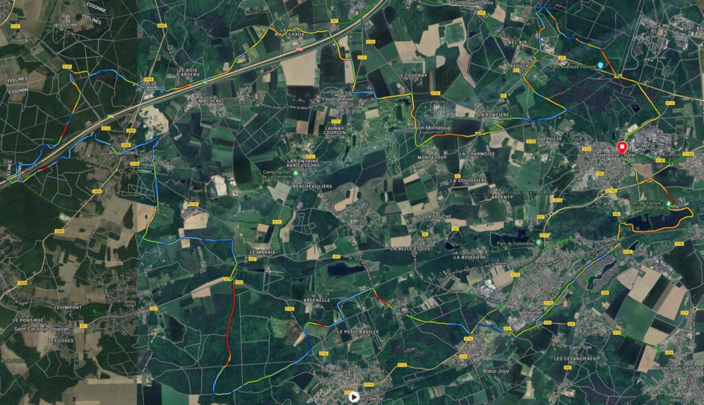 Rendez-vous à 7h30, dans la cours de l’Ecole Louis Moreau à La Ferté Alais . Pascal et moi (Hervé) soit