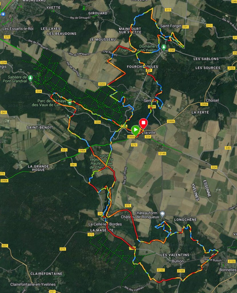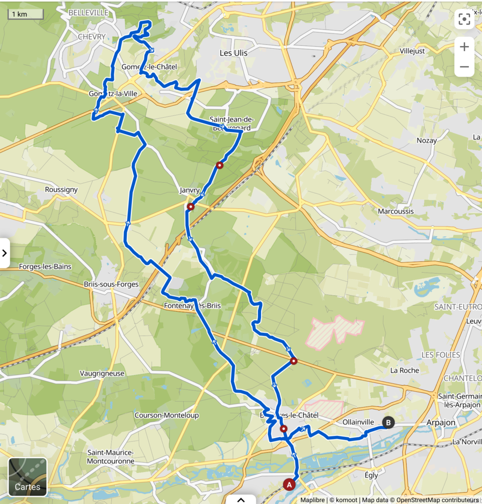 3 inscrits mais 2 au départ.. Pascal est resté scotché au lit ! 😃 Cap sur Briis, Limours et retour