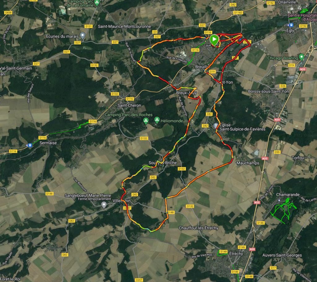 7 au départ de Breuillet; conditions météo idéales. Direction Bonnelles via Vaugrigneuses, Launay Maréchaux, Malassis et c’est que les choses